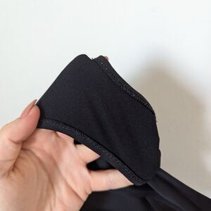 Bandeau style strapless top, includes removable padding, tie back