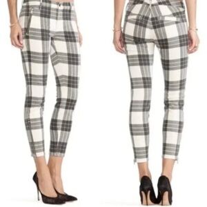 MOTHER Jeans Brand Side Zip Muse Plaid Pants Cream Black Size 24