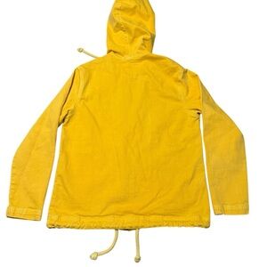Boxy zip up jacket with double draw strings. Bright golden color, "Old Gold". Minimal stretch denim-like material.