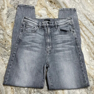 MOTHER The Swooner Ankle Zip Skinny Jeans Stretch Denim Static Light Grey Wash