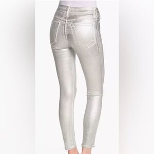 MOTHER High Waisted Looker Ankle Women’s Jeans in Silver Linings Sparkle Size 27