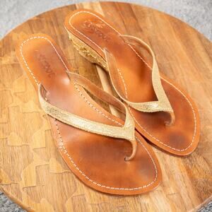 MYSTIQUE Gold Embellished Platform Thong Sandals Size 10