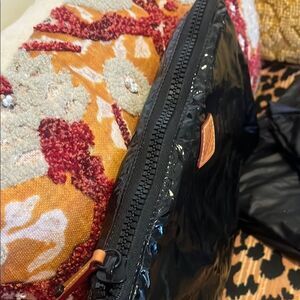 Glossy black MZ Wallace pouch with a brown logo patch. Ideal for storing essentials. Three included!!