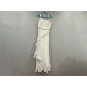 Mac Duggal 49537 White Pleated Tiered Ruffled Strapless Gown Sz 8
