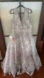Gorgeous floral-embroidered gown with heat-set crystal accents throughout. The dress has a sheer mesh bodice with a v-cut neckline and back. The plunging illusion neckline features a sheer mesh inset mid-bust, and the floor-length skirt is finished with a sweeping train.