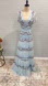 Mac Duggal Floral Embroidered Embellished Layered Mesh V Neck Maxi Gown Reemoly
