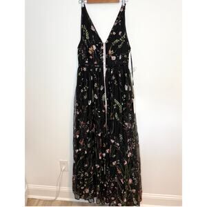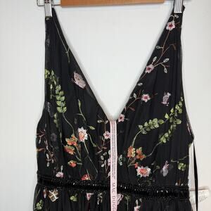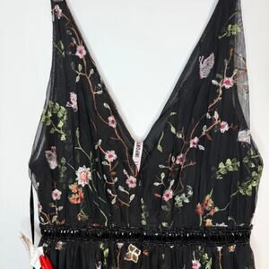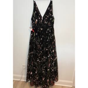 Mac Duggal Floral Embroidered Sleeveless A Line Gown Black Multi 70132 12 New