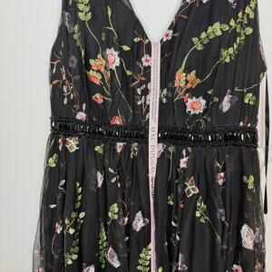 Mac Duggal Black Multi Floral Embroidered Sleeveless A Line Gown 70132 Size 12 New