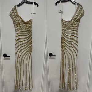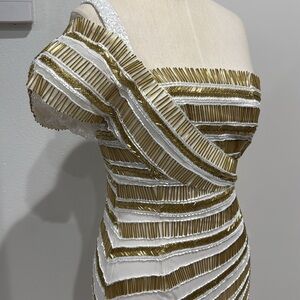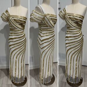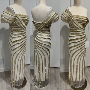 Mac Duggal Gold Goddess Beaded One Shoulder White Gown - Sample - Size 2