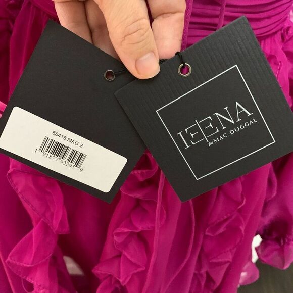 Mac Duggal Ieena Long Sleeve Chiffon Cut Out Ruffle Mini Dress Size 2 Magenta