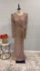 Mac Duggal Mocha Embellished Puff Long Sleeve Side Knot Sequined Gown - Reemoly
