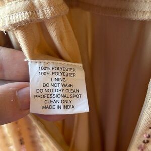 Sleeveless evening gown with vertically-striped iridescent sequins throughout the bodice and skirt. The plunging illusion neckline features a sheer mesh inset mid-bust.