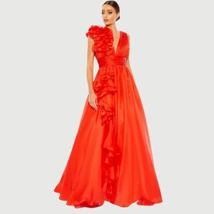 Mac Duggal Size 6 Cherry Red Ruffle V-Neck Chiffon Ballgown Long Gown Maxi Dress