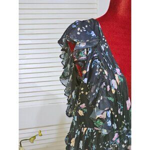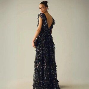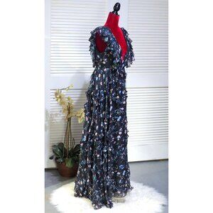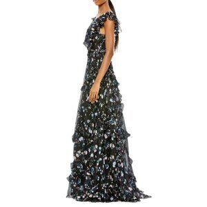Mac Duggal Women's Black Floral Ruffled Chiffon Leena Maxi Dress Size 8 2808