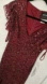Shimmer beading covers this tea-length dress, designed with whimsical flutter trim.