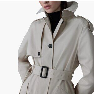 This water-repellent trench coat features a timeless silhouette with a high spread collar, storm and gun flaps, and flap-patch pockets to help keep the rain at bay.
