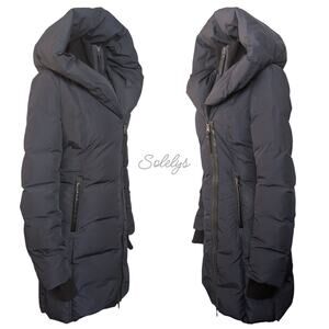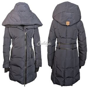 Mackage Kay Down Water Resistant Long Hooded Signature Collar Coat Navy Blue XS
