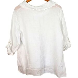 Made In Italy. Linen Cowl Neck 3/4 Sleeve Top. White. O/S