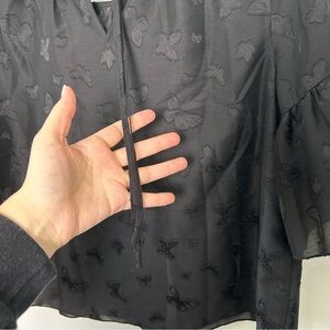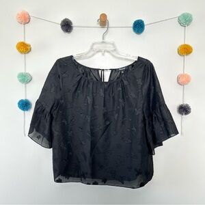 Madewell Black Butterfly Jacquard Ruffle Blouse