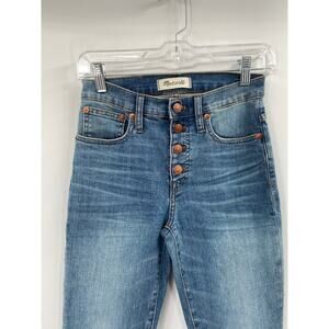 Madewell Cali Demi-Boot Medium Blue Distressed Denim Button-Fly Jeans Size 24