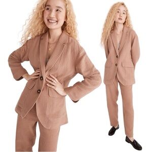 Madewell Larsen Tan Gauze Cotton & Linen Relaxed Blazer Size Medium