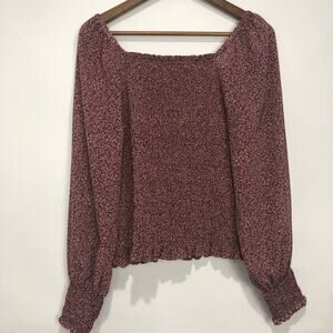 Madewell Floral Lucie Square Neck Bubble Sleeve Smocked Top Size M