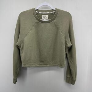 Madewell MWL Airyterry Crop Sweatshirt in Heather Olive Tree Green