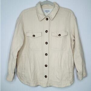 Madewell Oatmeal Long Sleeve Button Front Pocketed Waffle Pattern Shirt Jacket