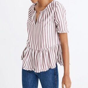 Madewell | Striped Stanza Ruffle Hem Short Sleeve Peplum Top, XL