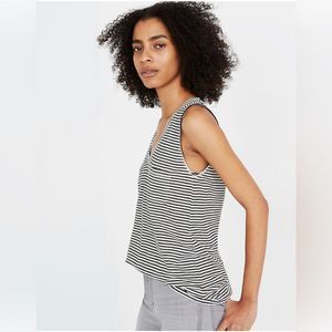 Madewell Whisper Cotton V-Neck Pocket Tank in Eastwood Stripe women’s size small