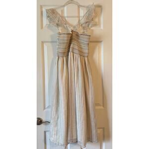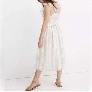 Madewell Women’s Ruffle-Strap Smocked Rainbow Stripe Midi Dress Size M