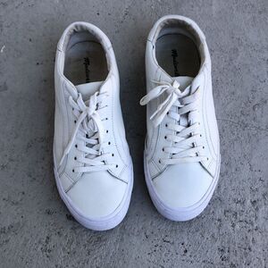 White leather sneakers with a canvas lining style number is MA134. They are great sneakers but need a drop of glue on one side wall and a stitch around the ankle. I show both in the pictures,women’s 9 1/2 in men’s six.