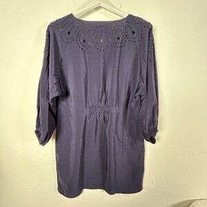 Madison Marcus Women's Eyelet Tunic Top 3/4 Sleeve Embroidered Silk Blue Medium