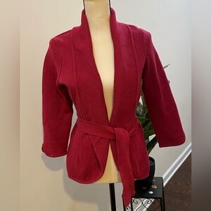 Madison burgundy 4/4 sleeve waist tie sweater. Heavyweight cotton-no flaws. No smoke, no animals home. Measures 21 pit to pit x 24” long.