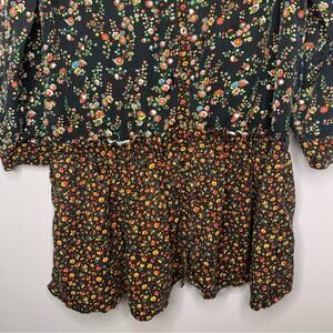 Maeve Anthropologie Marlie Button-front Chambray Tunic dark tiny florals size 14