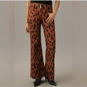 Maeve The Junie High-Rise Flare Stretchy Jeans Brown Motif Size 33 Animal Print