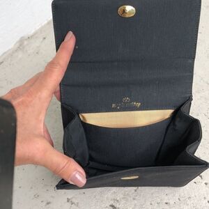 Sweet vintage bag it does need a tiny bit of cleanup. Inside is super clean. measures 6 1/2 x 5 x 1 1/2. Woven handle drop is approximately 4 inches. Still has original make up mirror