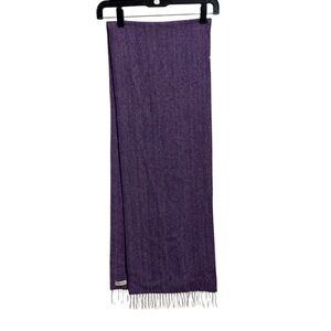Elegant purple scarf with fringe detailing. Perfect for adding a pop of color to any outfit.