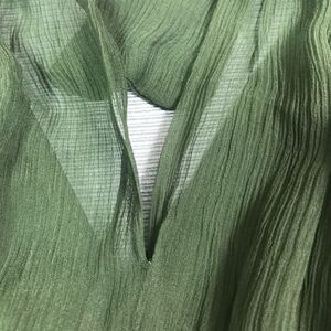 Maggy London Green Crepey Halter Beaded Gown Dress