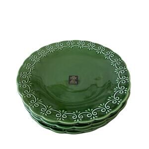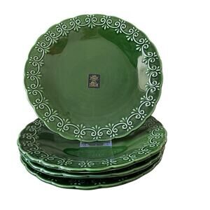 Maioliche Jessica Made in Italy Christmas Dinner Plates 11" Set 4 Green