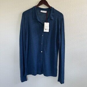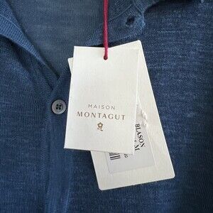 Maison Montagut Mens Collared Cargian Sweater Size M Blue.