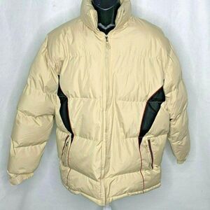 Maitesi Classic Down Puffer Jacket XL Tan Lined Full Zip Pockets Elastic Sleeves