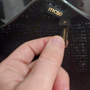 Maje Black Sequin Sparkle Tweed Jacket Size 3 Large