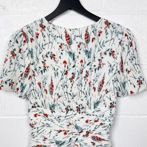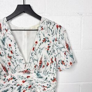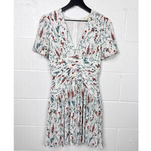 Chic mini dress by Maje. Features a floral pattern. V-neckline and short sleeves. Perfect for any occasion. Never worn