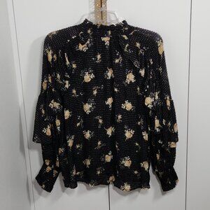 Maje Floral Ruffle Sleeve Top Size 2(M US) Black