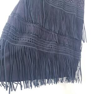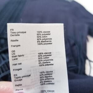 Maje Reia Nuit Sheer Lace Fringe Mini Dress Dark Blue