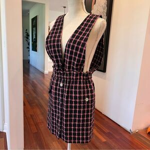 Chic Maje NWT dress in pink and black tweed. Features a stylish checkered pattern. Ideal for versatile wear.