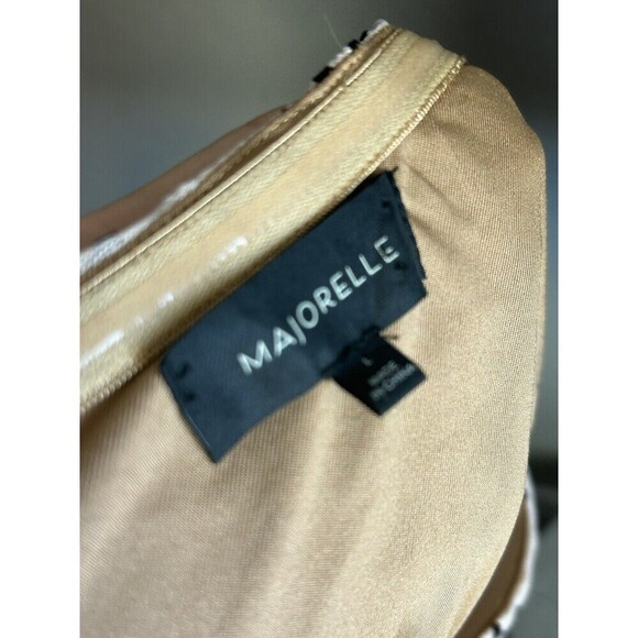 This stunning Majorelle dress is the perfect addition to any wardrobe. The beautiful pink polka dot pattern is complemented by the one-shoulder neckline and long sleeves, making it a great choice for special occasions such as weddings or parties. The dress is made from a combination of nylon and spandex, ensuring a comfortable and stretchy fit. The dress is lined and has a zip closure for added convenience. Its short length and summer/spring season availability make it an ideal choice for those who want to show off their style. The dress is available in size large and is suitable for regular-sized women. Don't miss the chance to add this gorgeous Majorelle dress to your collection. Pit to pit 18" Hips 18" Length 36" Excellent condition