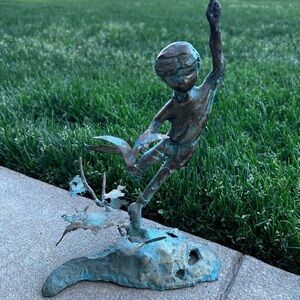 Beautiful bronze sculpture of a boy chasing birds. Classy & artistic decor! Nicely patina. In great condition! Stands approx: 9” tall