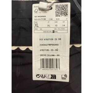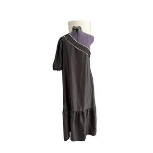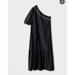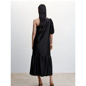 Mango Black Asymmetrical Satin Dress With Puffed Sleeve & Ruffled Hem Sz US 10